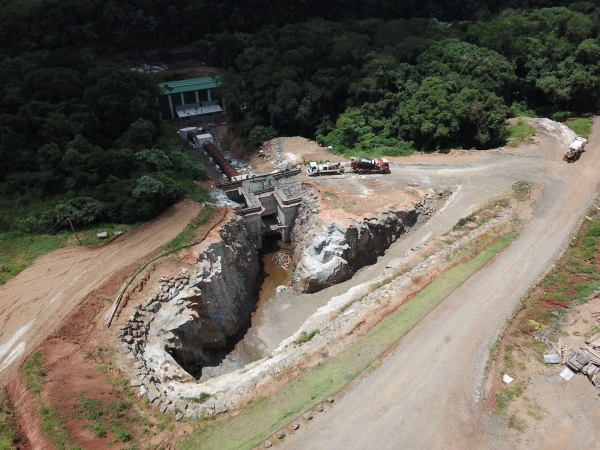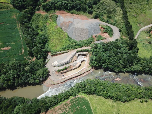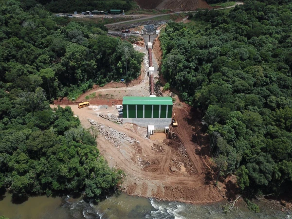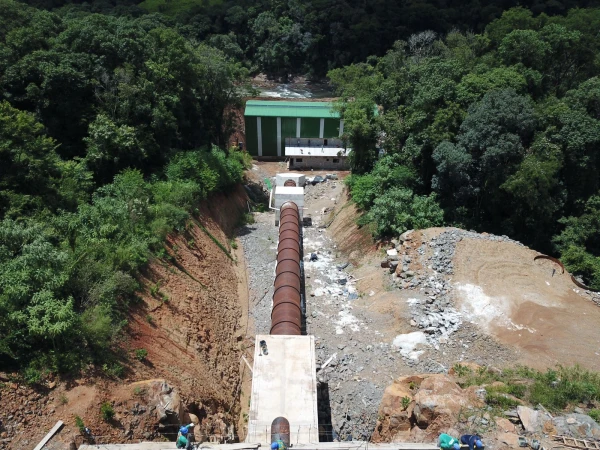 | Conduto Forçado: 1 Unidade – Comprimento de 90 metros com diâmetro 2,50 m. e 15 metros bifurcados com diâmetro de 1,75 m. |