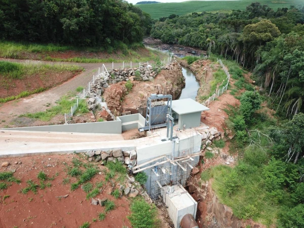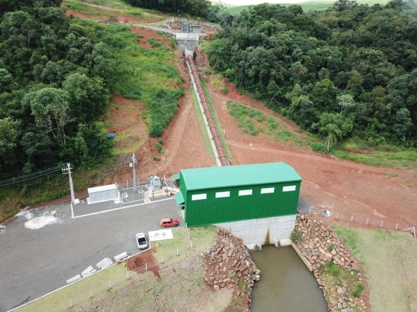 | Conduto Forçado: 1 Unidade – Comprimento de 77 metros com diâmetro 2,00 m. e 13 metros bifurcados com diâmetro de 1,40 m. |